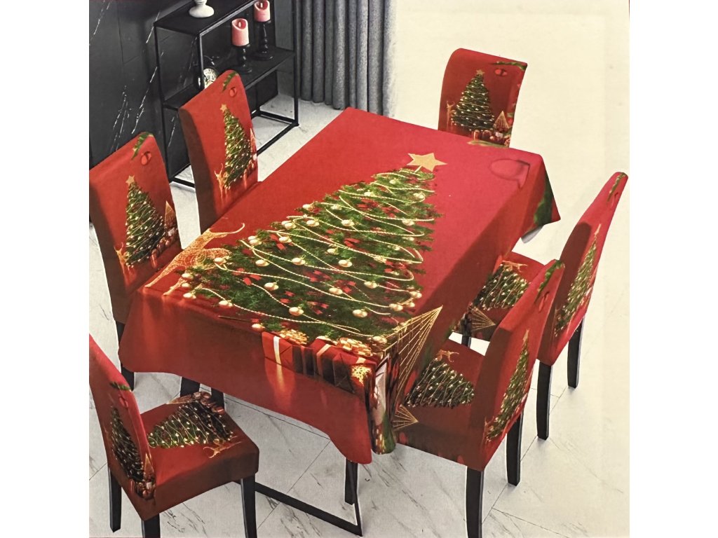 💧🎄 VODĚODOLNÝ VÁNOČNÍ SET – UBRUS + POTAHY NA ŽIDLE 🎅